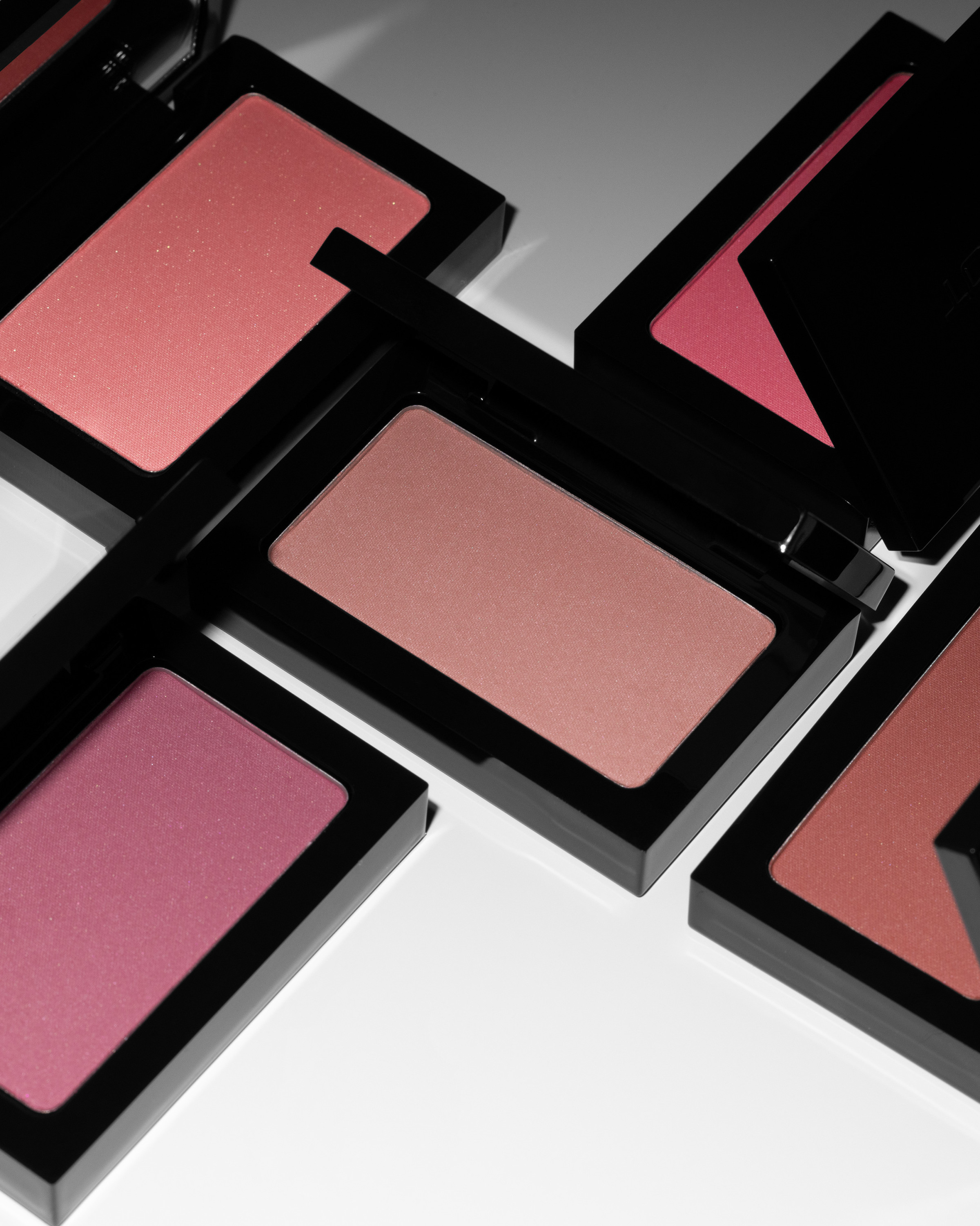 Apply blush to the cheeks using the 64G brush with loose bristles. Build up the colour gradually, moving the brush toward the temples and layering the product to achieve the desired effect.