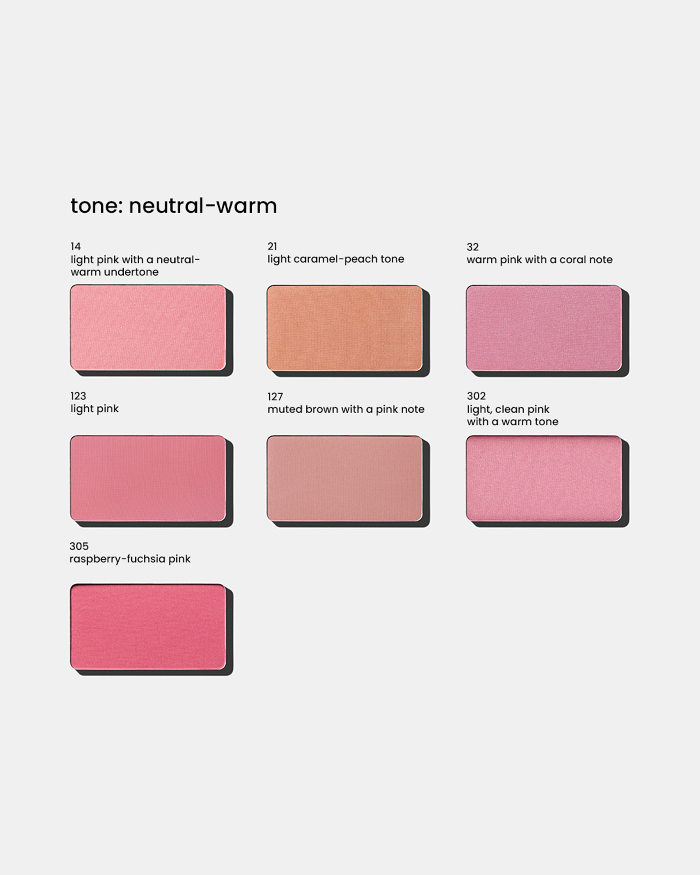 Also suitable for Light Spring and Light Summer, for a natural and fresh effect. On Soft Summer, it can be paired with bronzer for better balance.